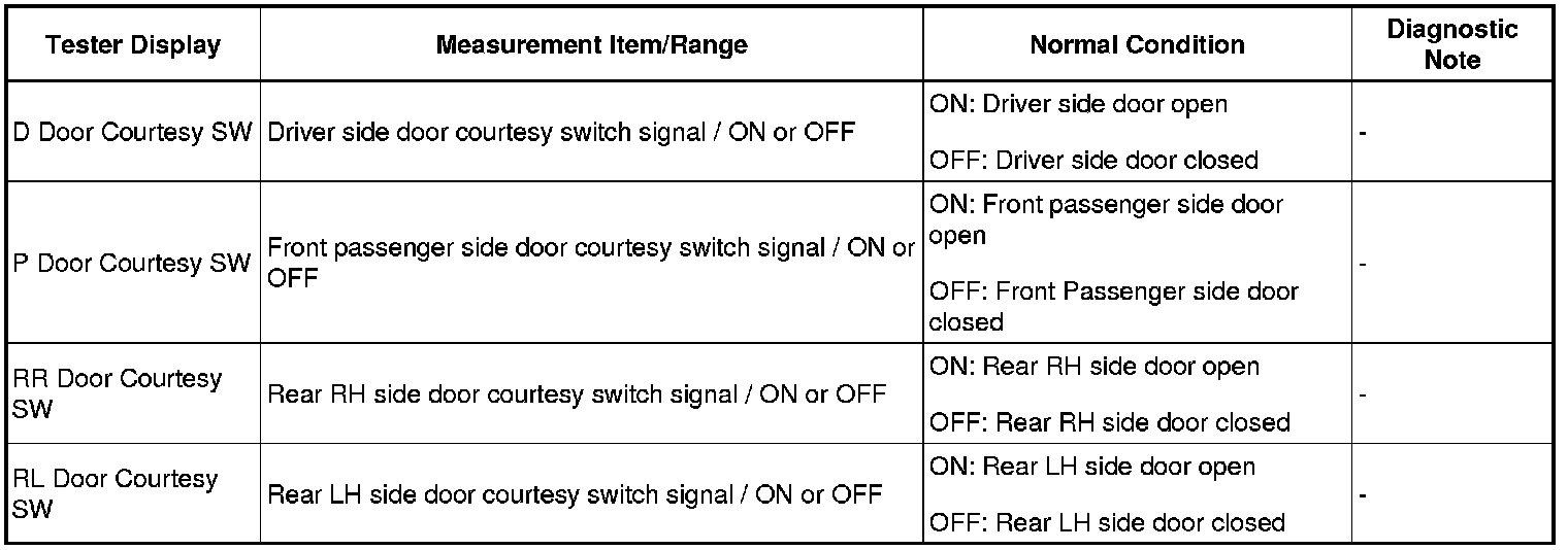 (d) Enter the following menus: Body Electrical / (desired system) / Data List.