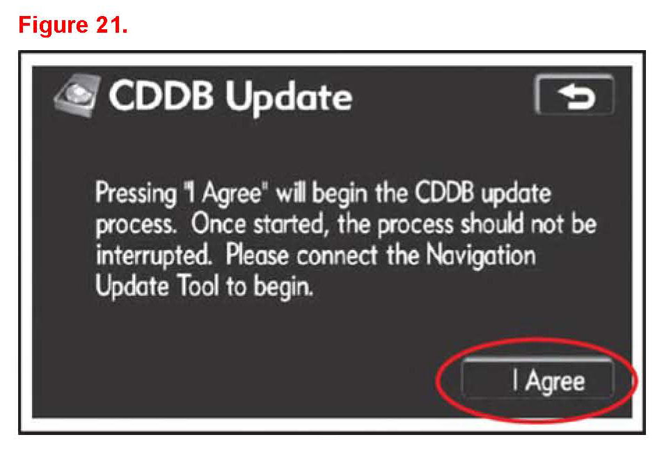CDDB data updates will be released quarterly through the Technical Information System (TIS) and can be uploaded to the vehicle using the Navigation Update Tool and Navigation Programs Installer software. CDDB data only needs to be loaded onto the Navigation Update Tool once per quarterly release. Vehicle CDDB updates are performed using the Navigation Update Tool.