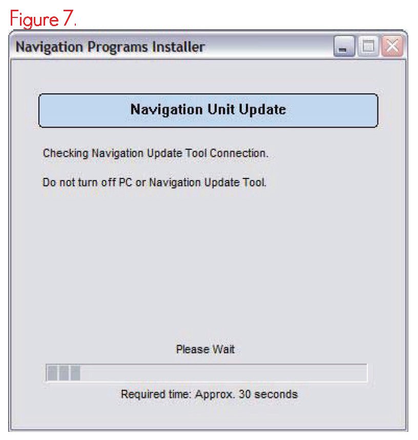 11. The software will perform a connection check with the Navigation Update Tool, in the event an error is shown please recheck USB connection.