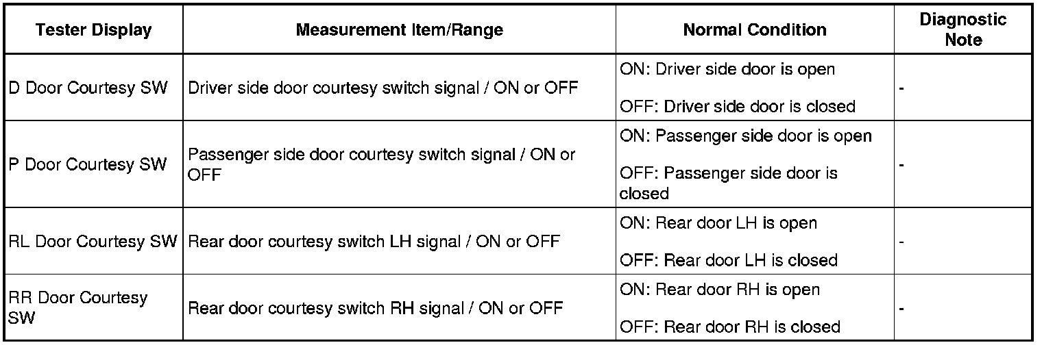 DOOR LOCK: WIRELESS DOOR LOCK CONTROL SYSTEM: DATA LIST / ACTIVE TEST