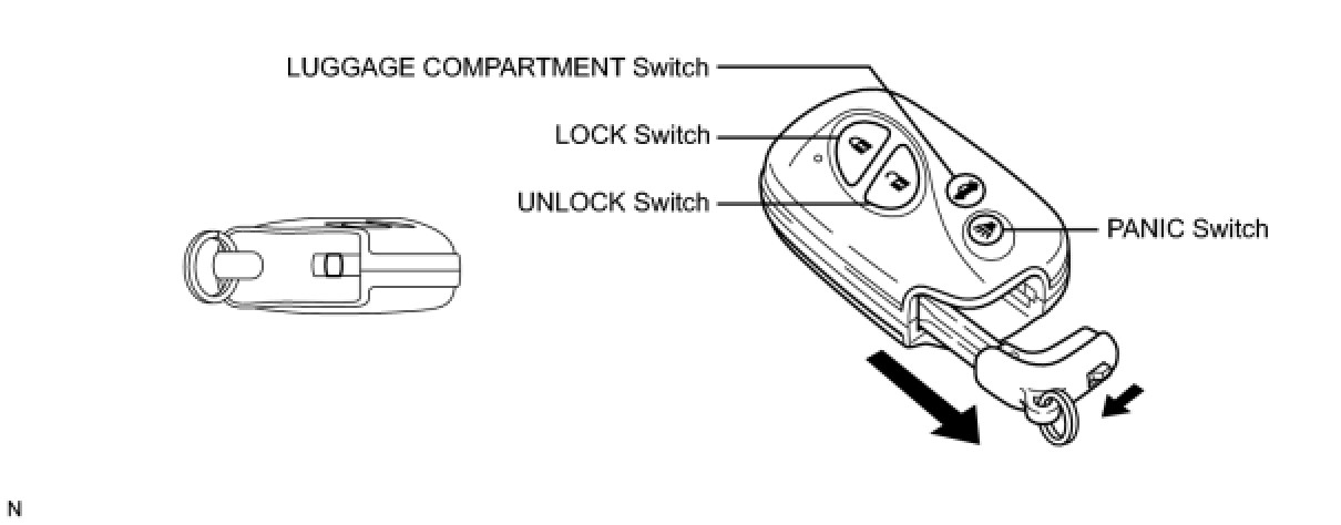 - The transmitter function for the wireless door lock control has a LOCK switch, UNLOCK switch, LUGGAGE COMPARTMENT switch and PANIC switch.