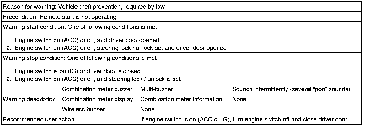 (1) Steering lock / unlock set, driver door is opened and movement away from vehicle is attempted