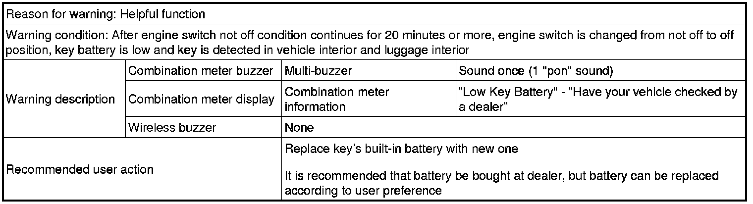 (1) Key with almost depleted battery is used to drive vehicle