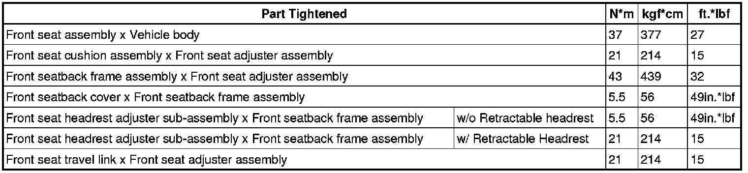 SERVICE SPECIFICATIONS: SEAT: TORQUE SPECIFICATIONS