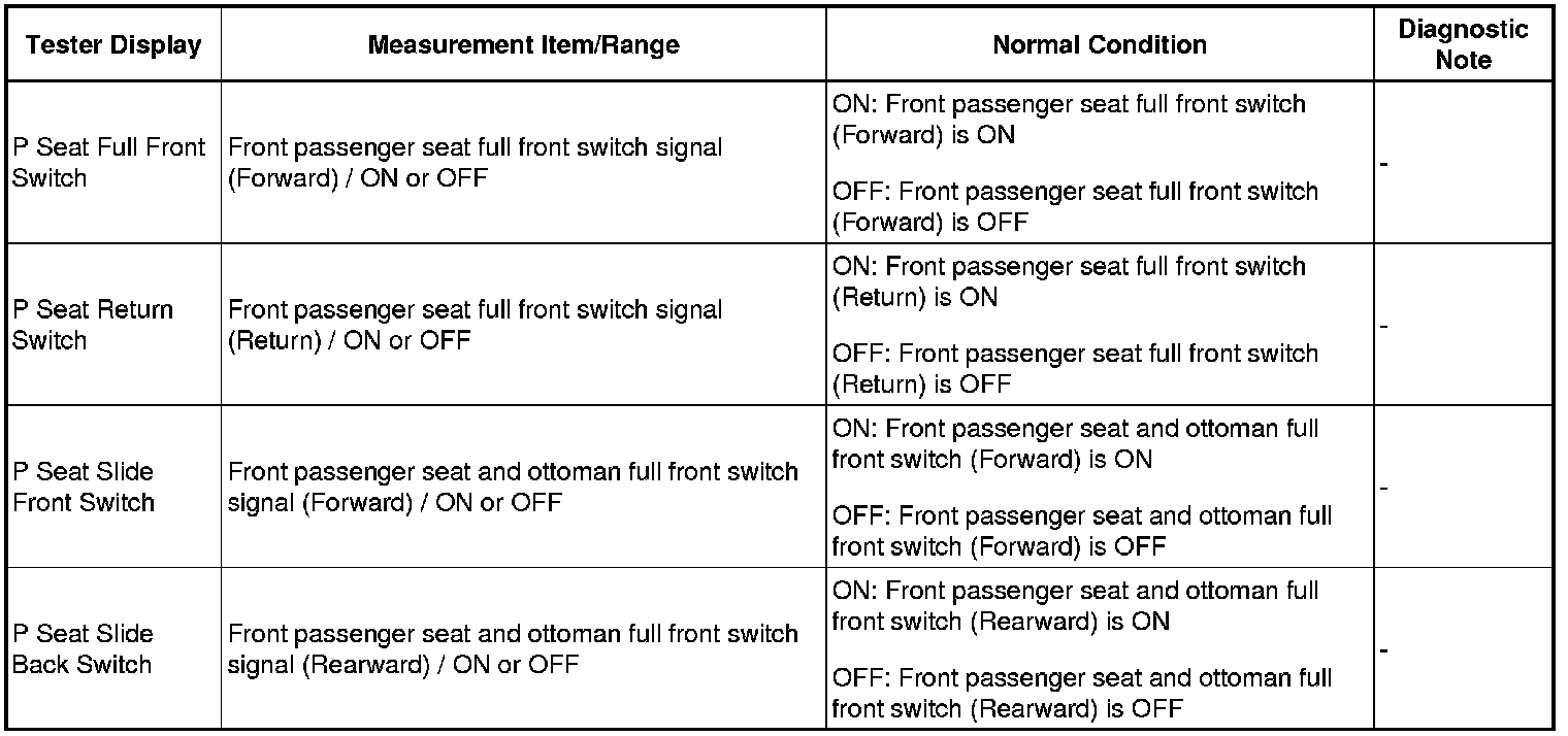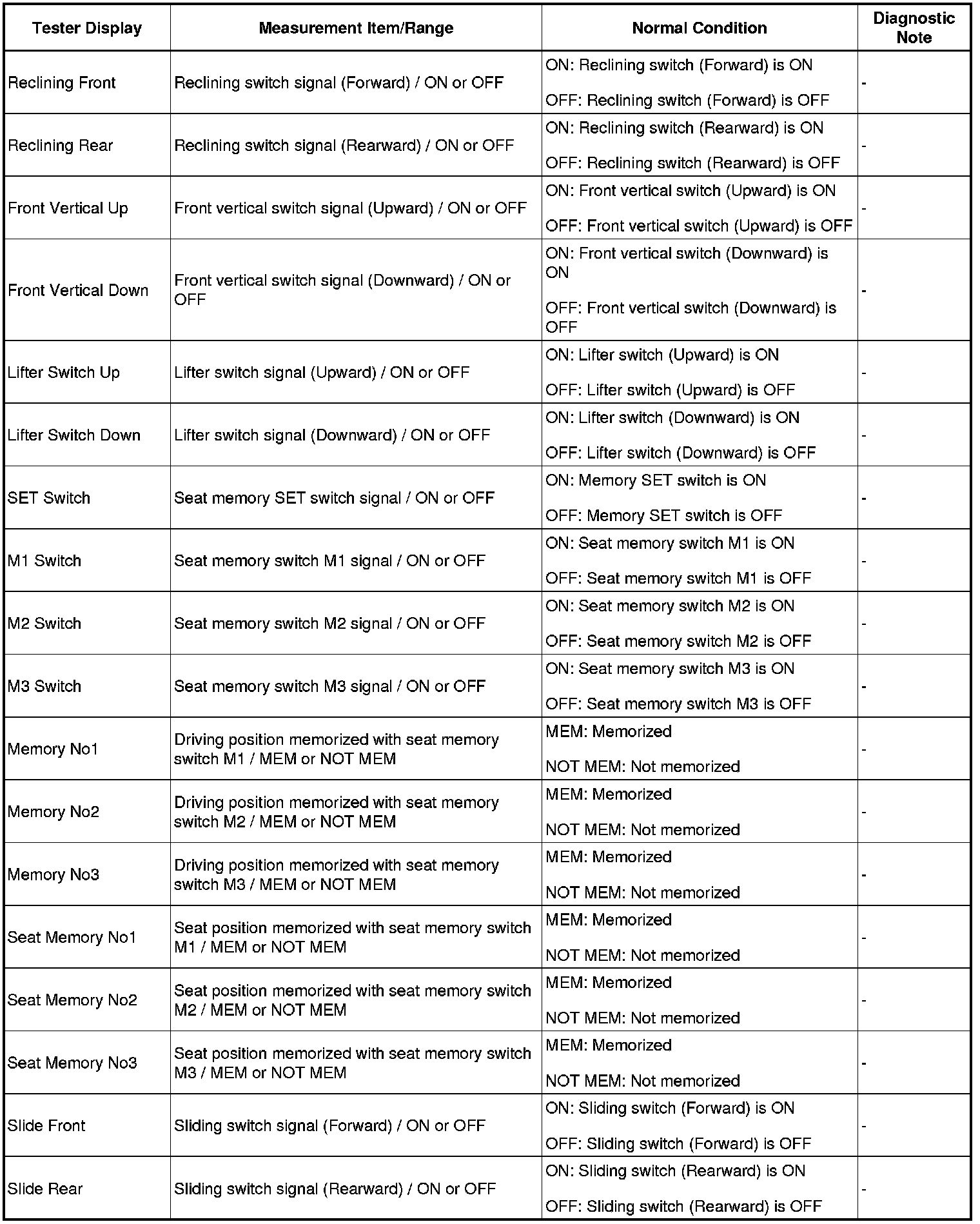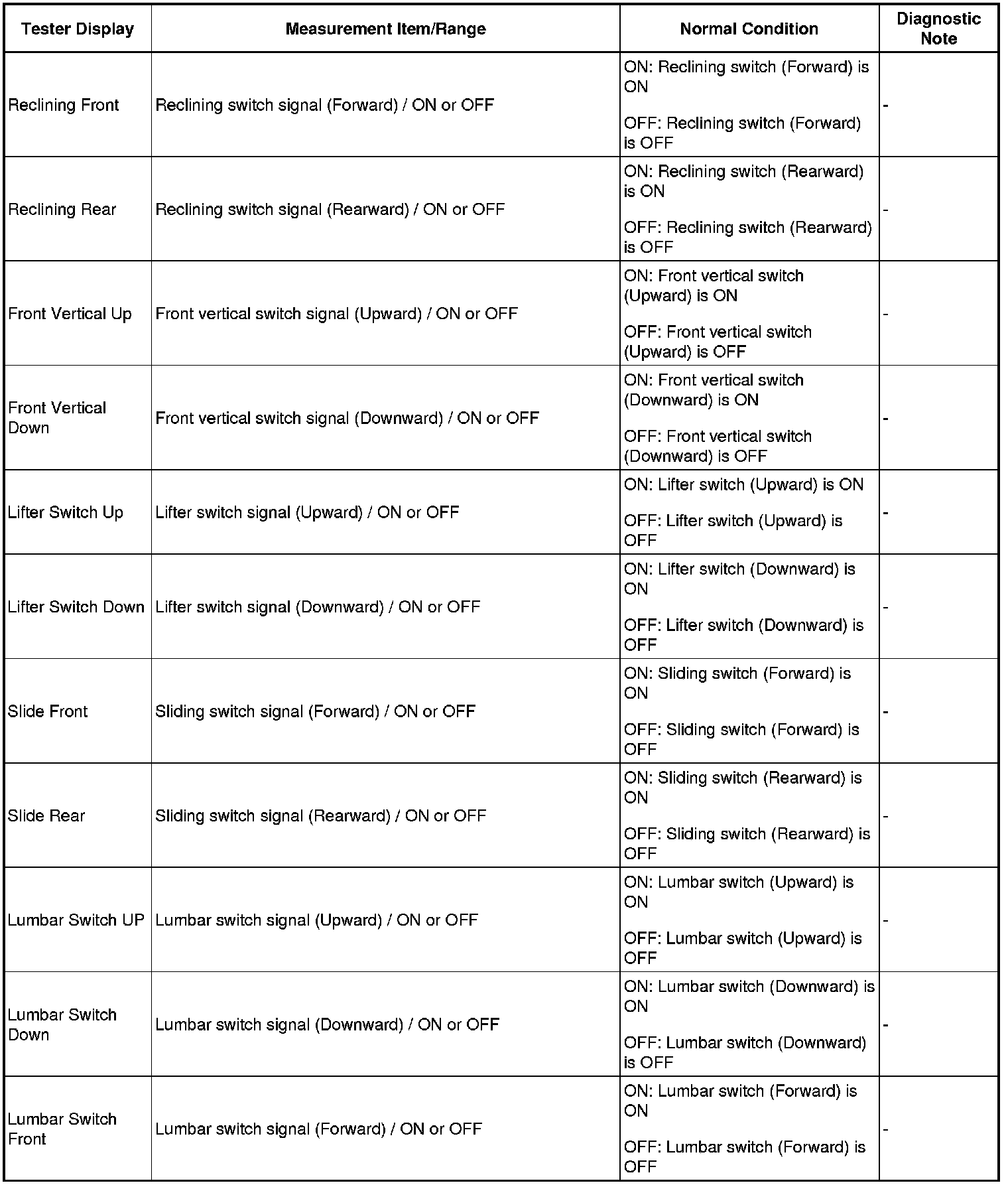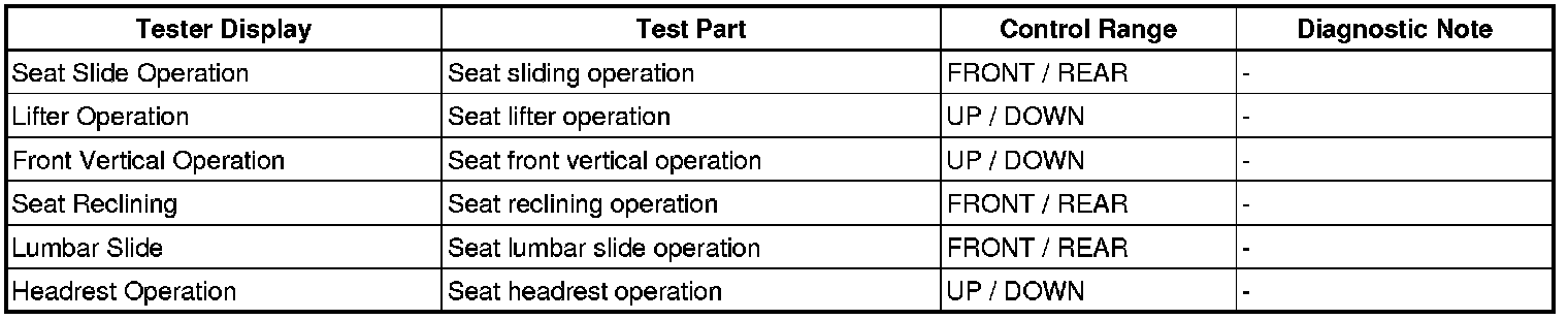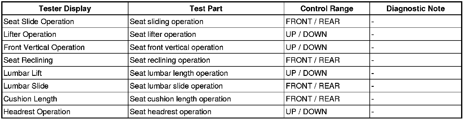 SEAT: FRONT POWER SEAT CONTROL SYSTEM: DATA LIST / ACTIVE TEST