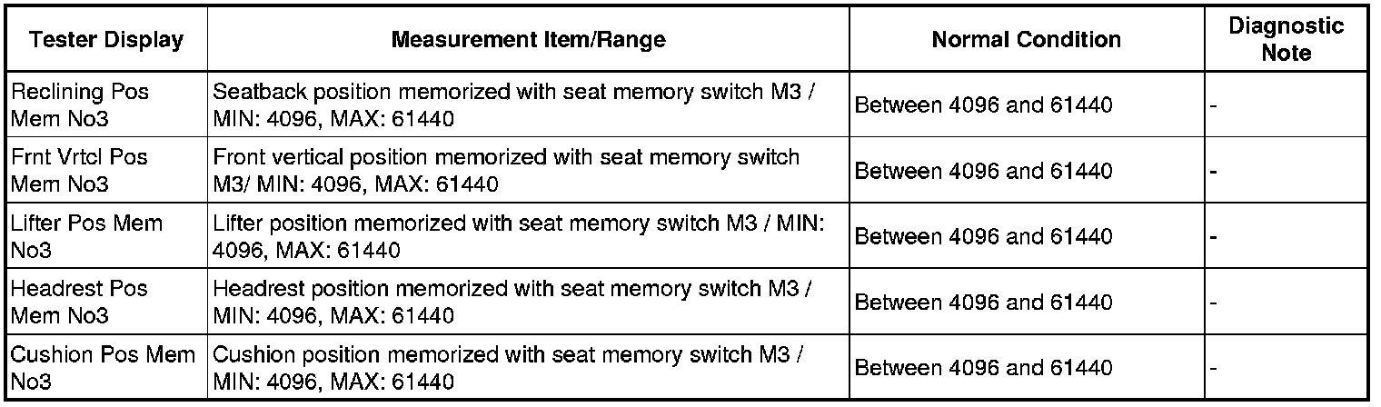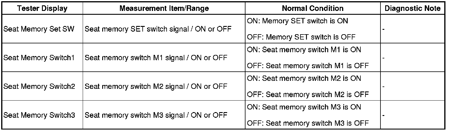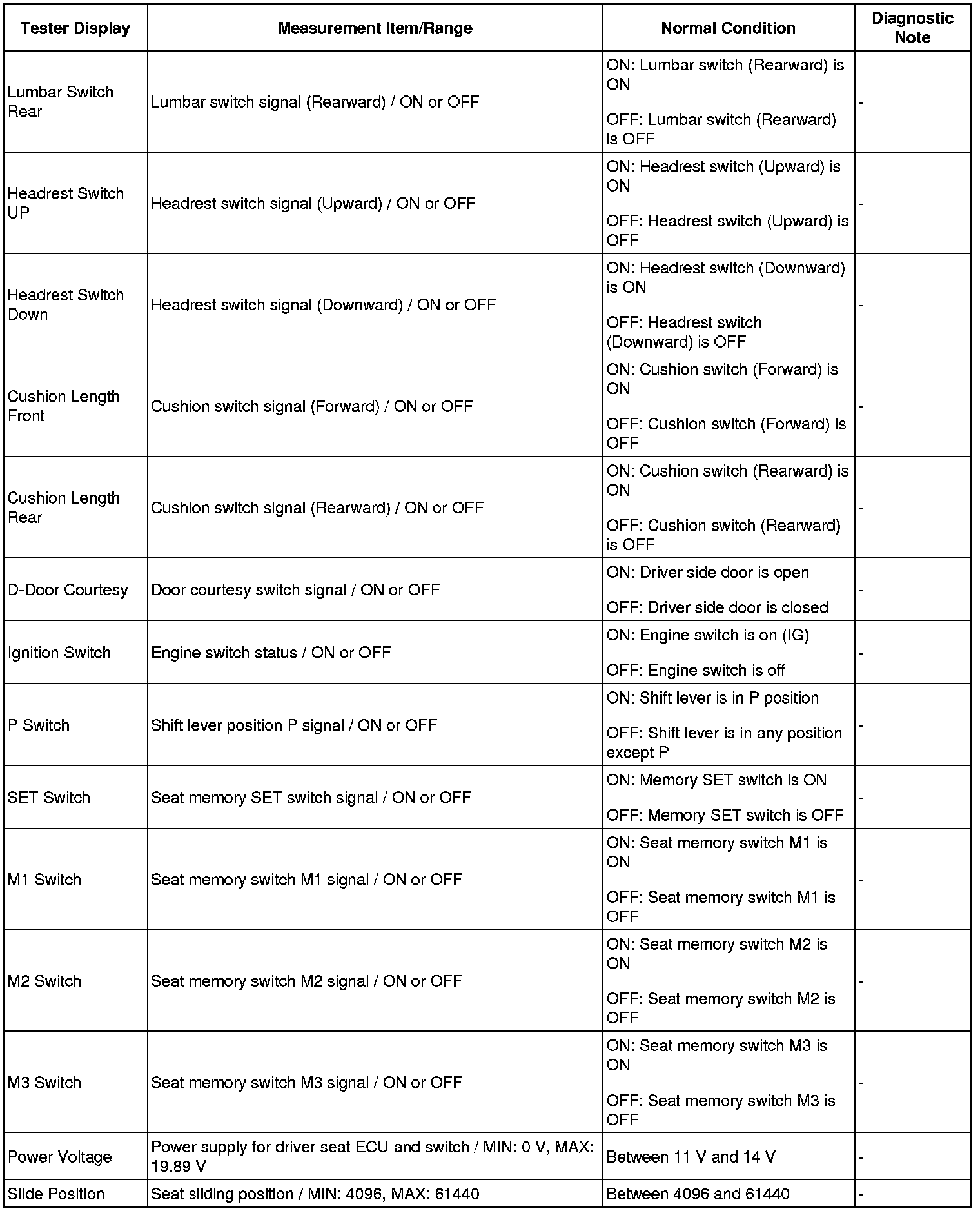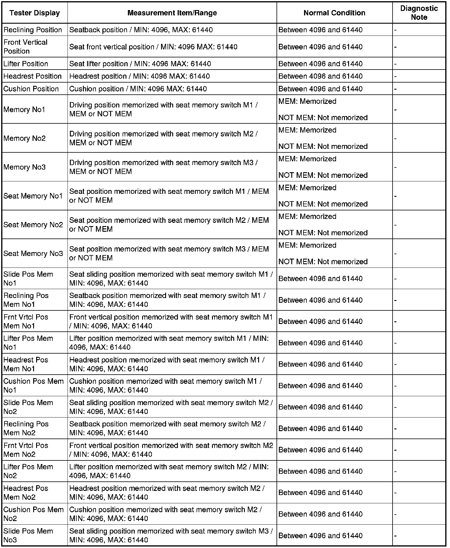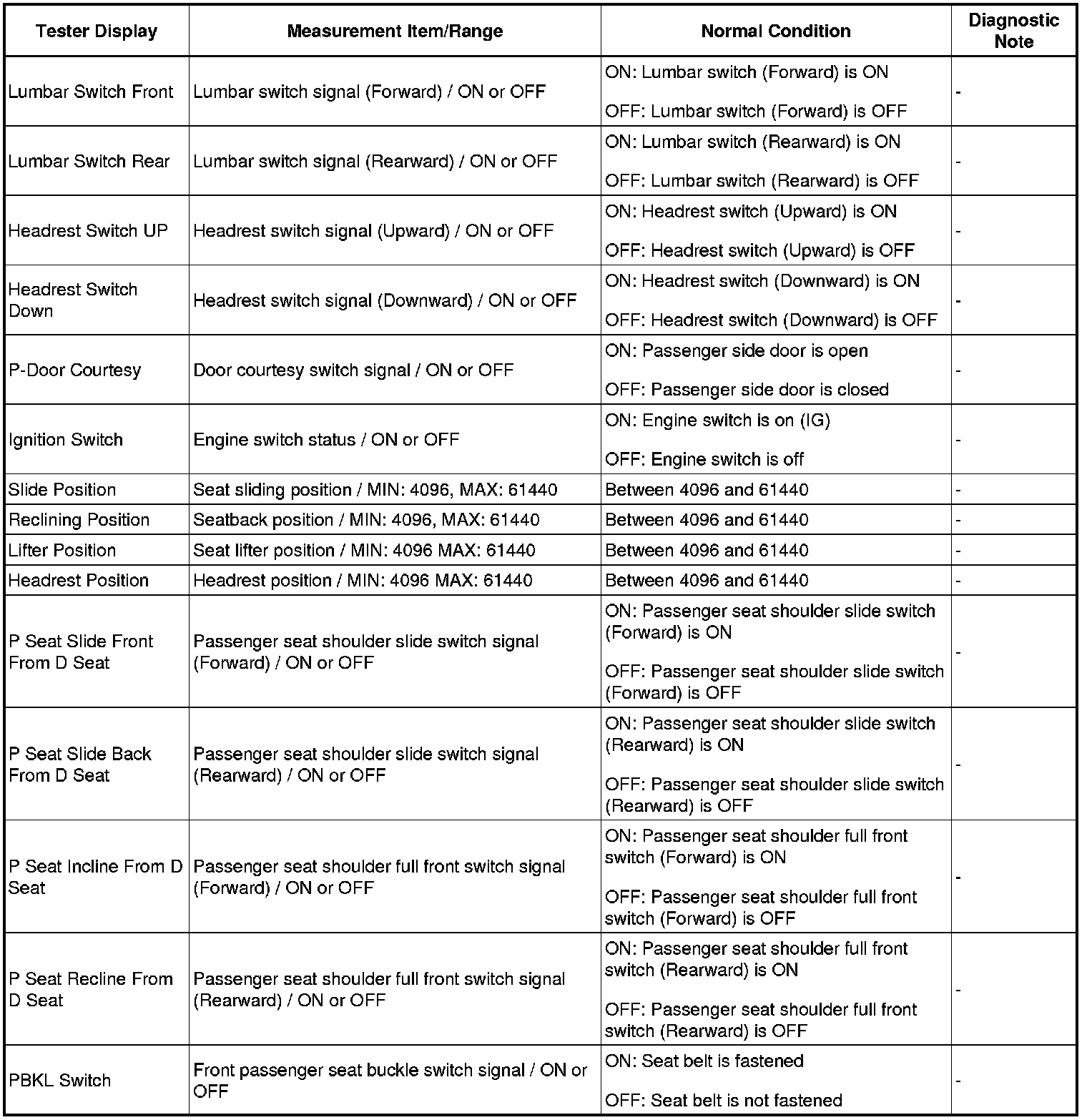 SEAT: FRONT POWER SEAT CONTROL SYSTEM: DATA LIST / ACTIVE TEST