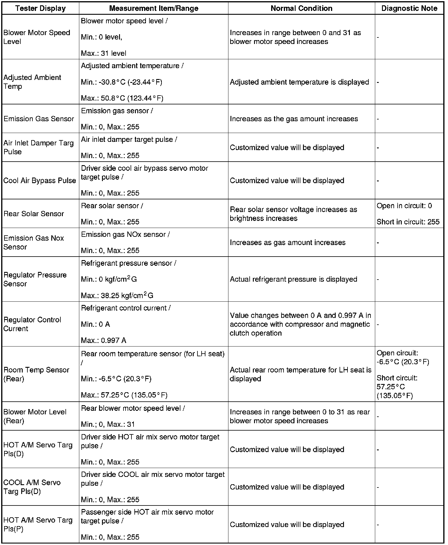 AIR CONDITIONING: AIR CONDITIONING SYSTEM: DATA LIST / ACTIVE TEST