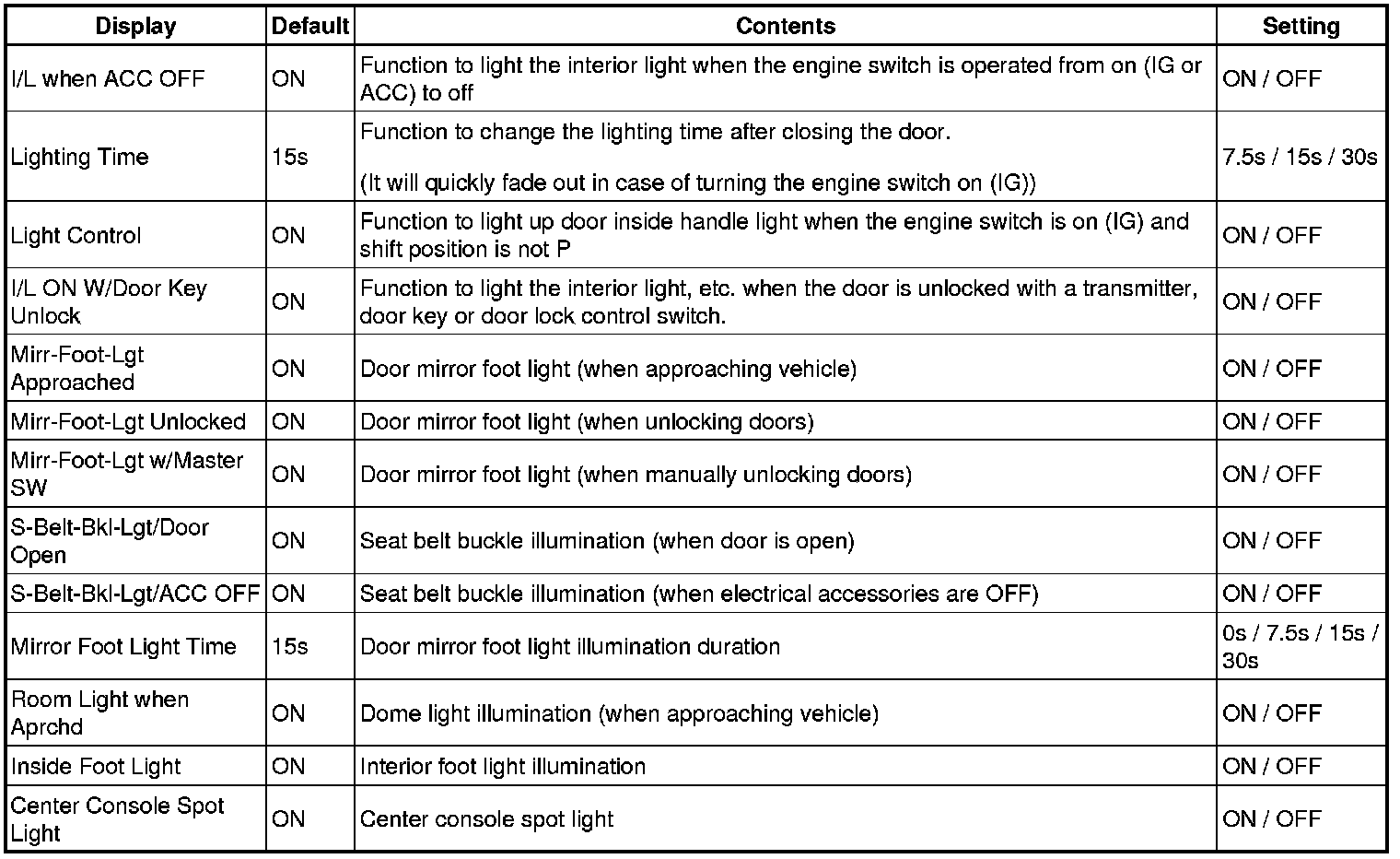 Mode 1: When door is opened, map light of opened door illuminates, or personal light illuminates