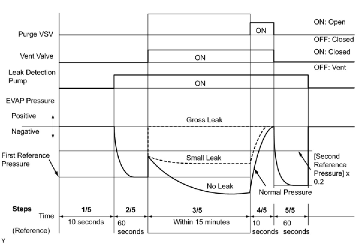 (b) Compare the EVAP pressure in step 3/5 and the second reference pressure (step 5/5).