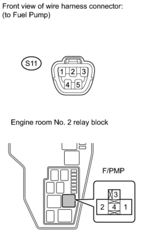 (2) Disconnect the S11 fuel pump connector.