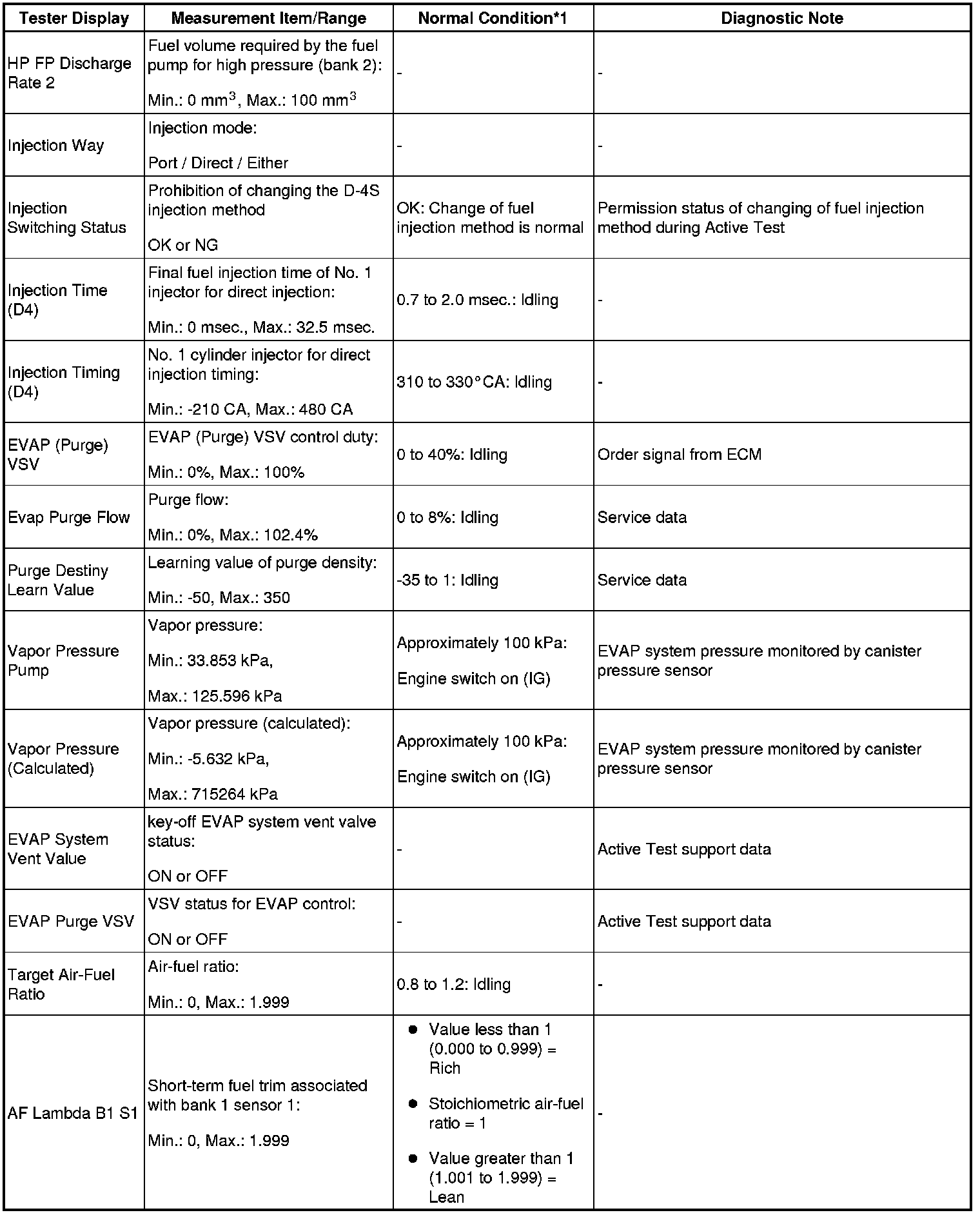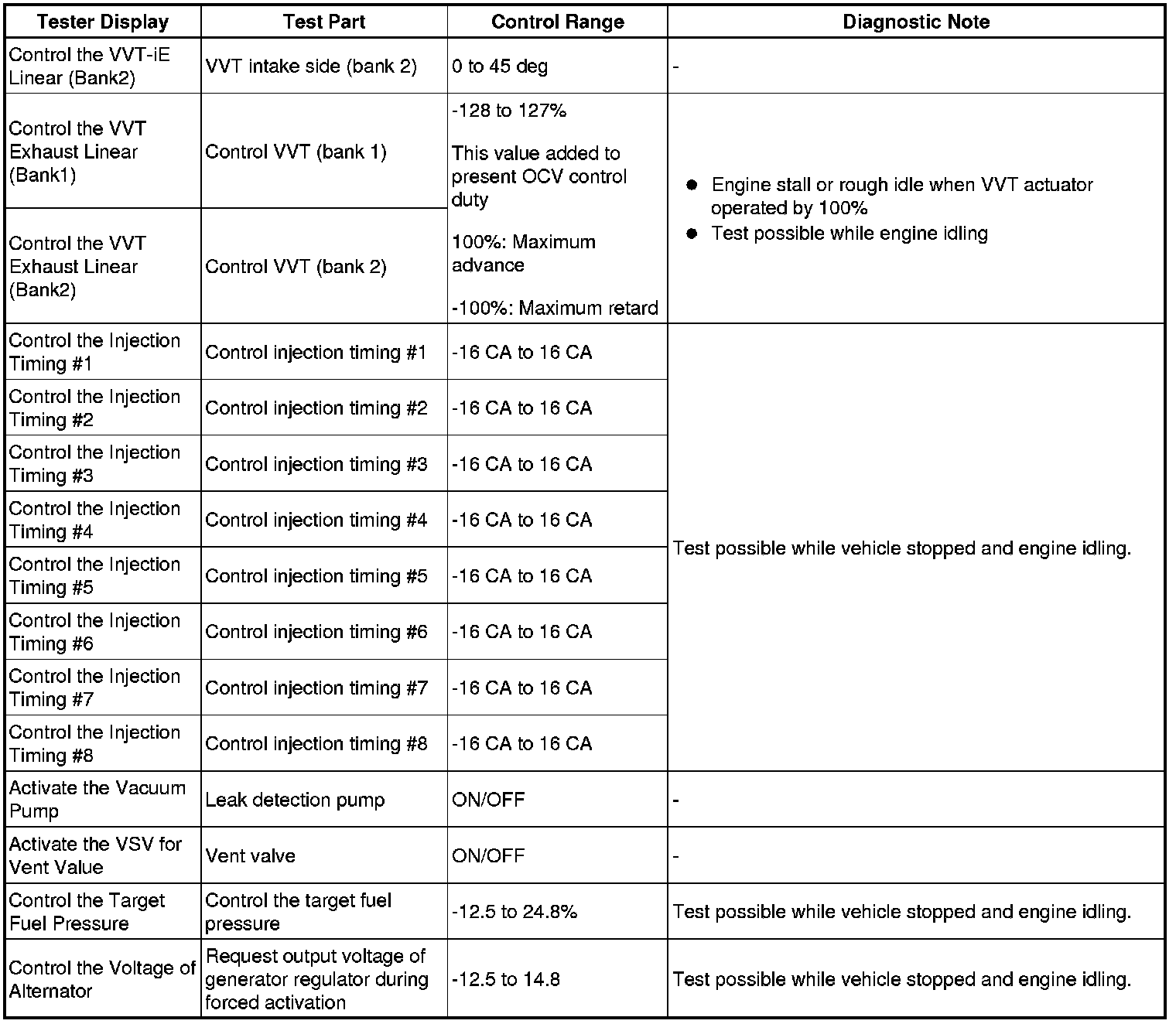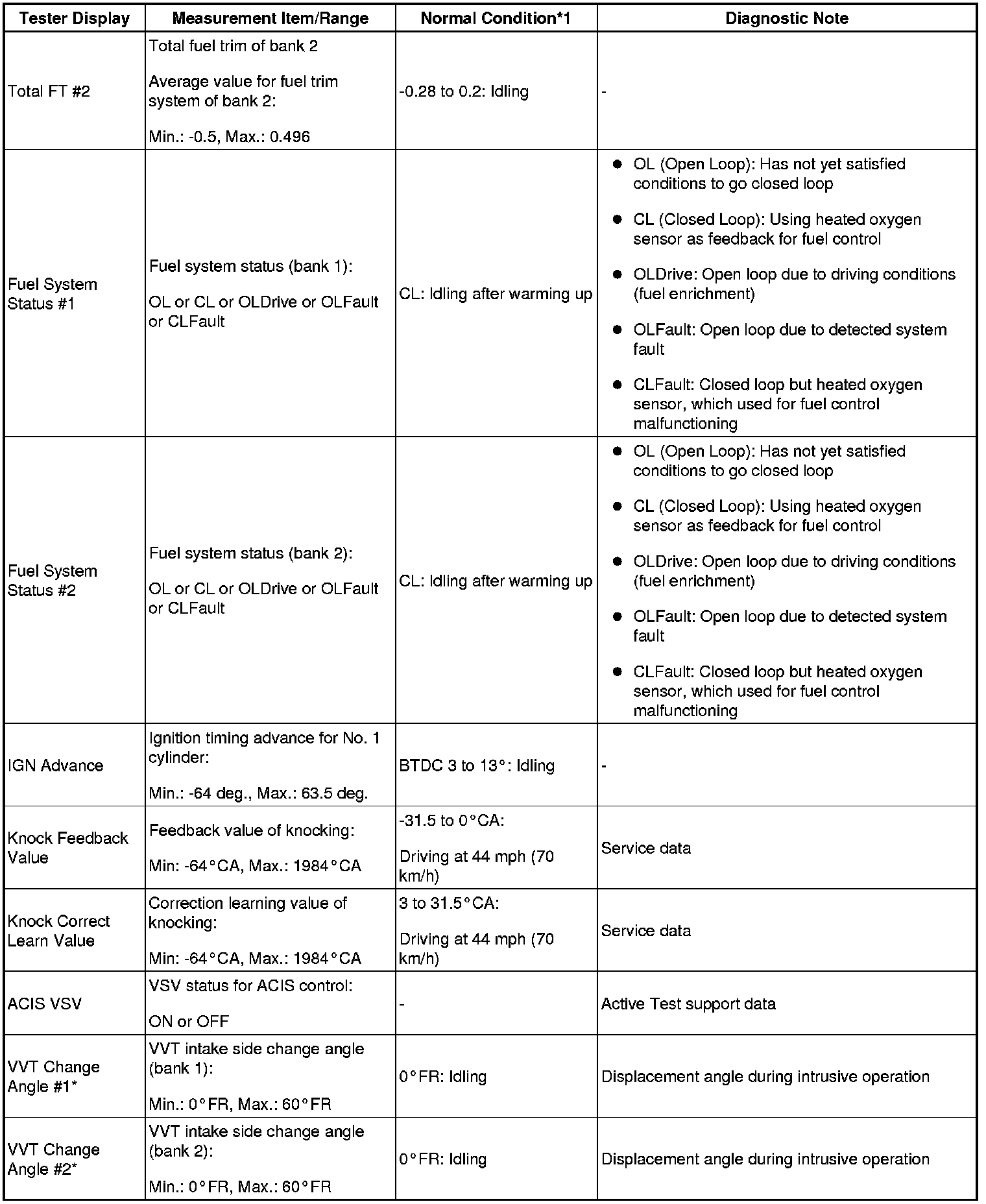 - *: Data List values are only displayed when performing the following Active Tests: Control the VVT-iE Linear (Bank1), Control the VVT-iE Linear (Bank2), Control the Exhaust Linear (Bank1) and Control the Exhaust Linear (Bank2). For other Active Tests, the Data List value will be 0.
