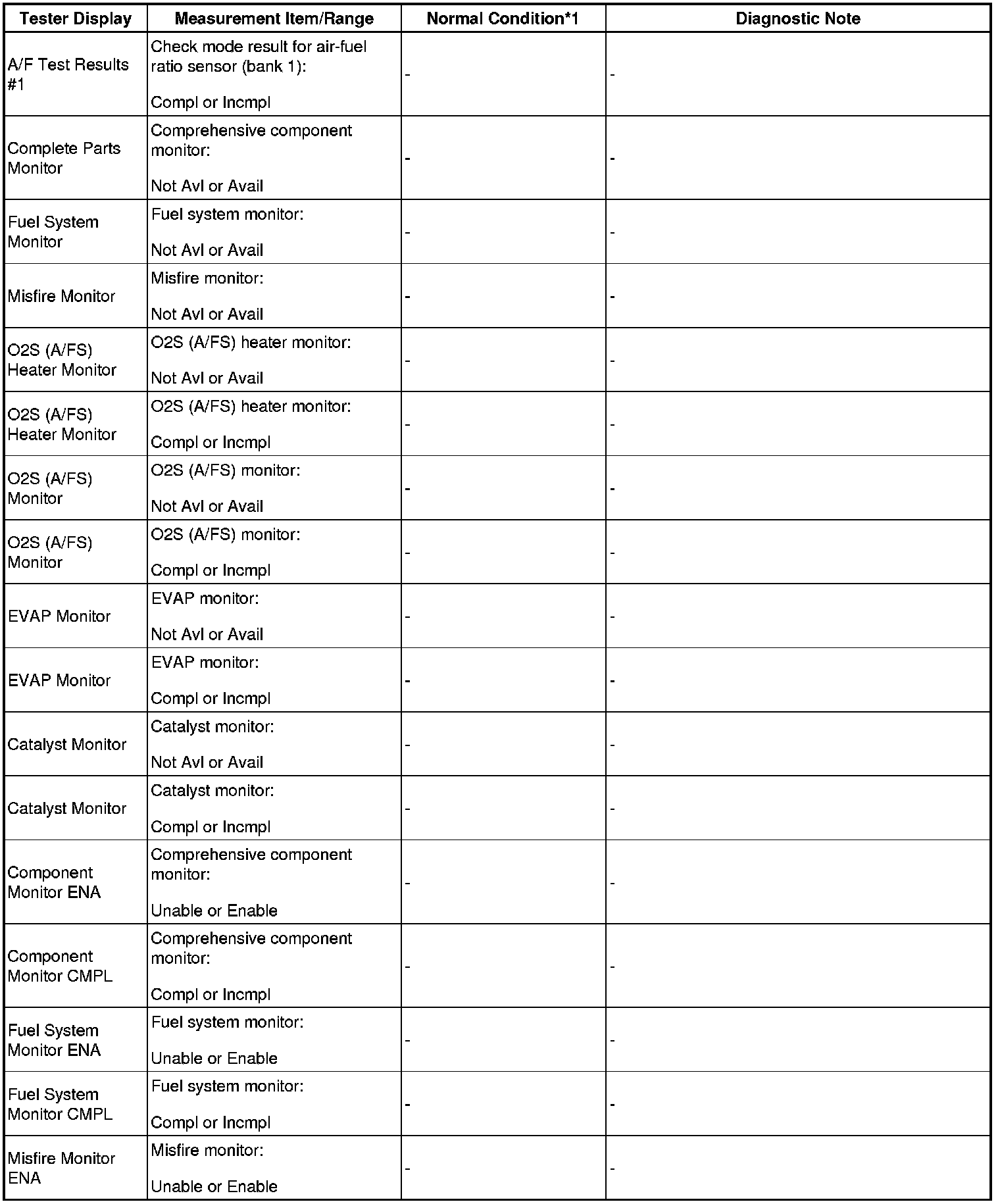 In the table below, the values listed under Normal Condition are reference only. Do not depend solely on these values when determining whether or not a part is faulty.