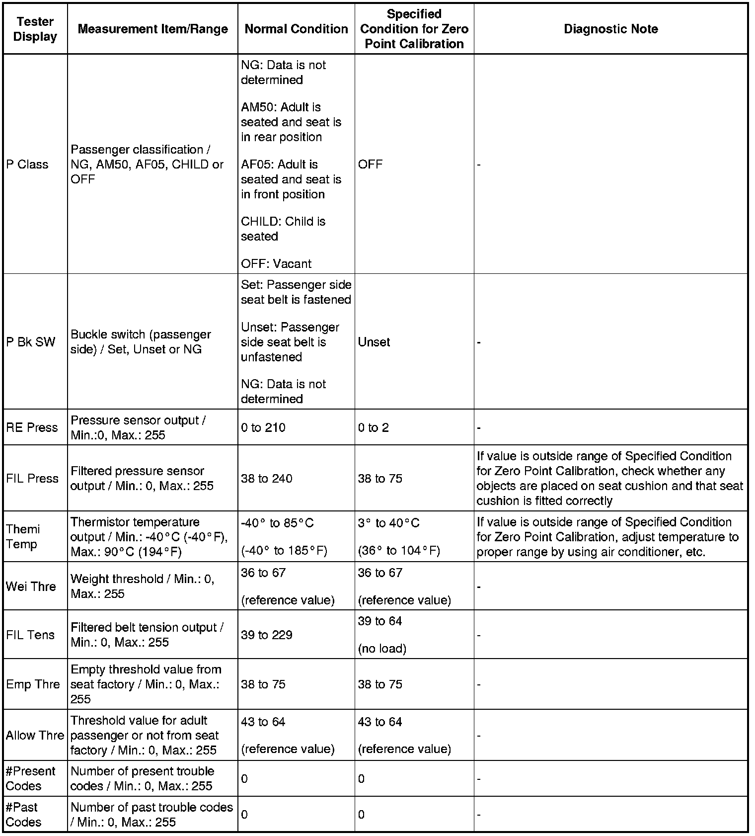 SUPPLEMENTAL RESTRAINT SYSTEM: OCCUPANT CLASSIFICATION SYSTEM: DATA LIST / ACTIVE TEST
