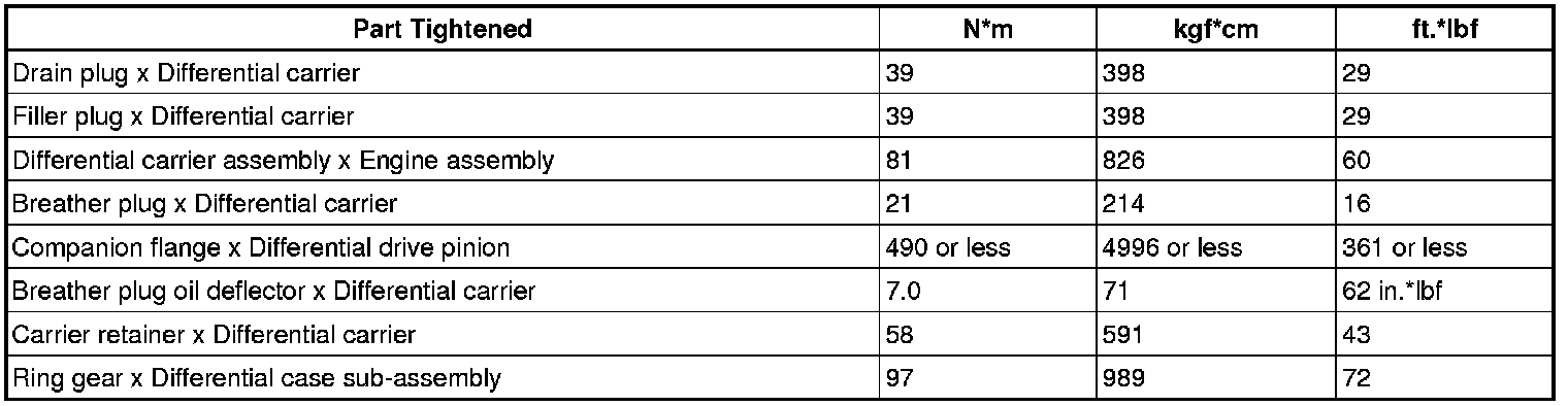 SERVICE SPECIFICATIONS: DIFFERENTIAL: TORQUE SPECIFICATIONS