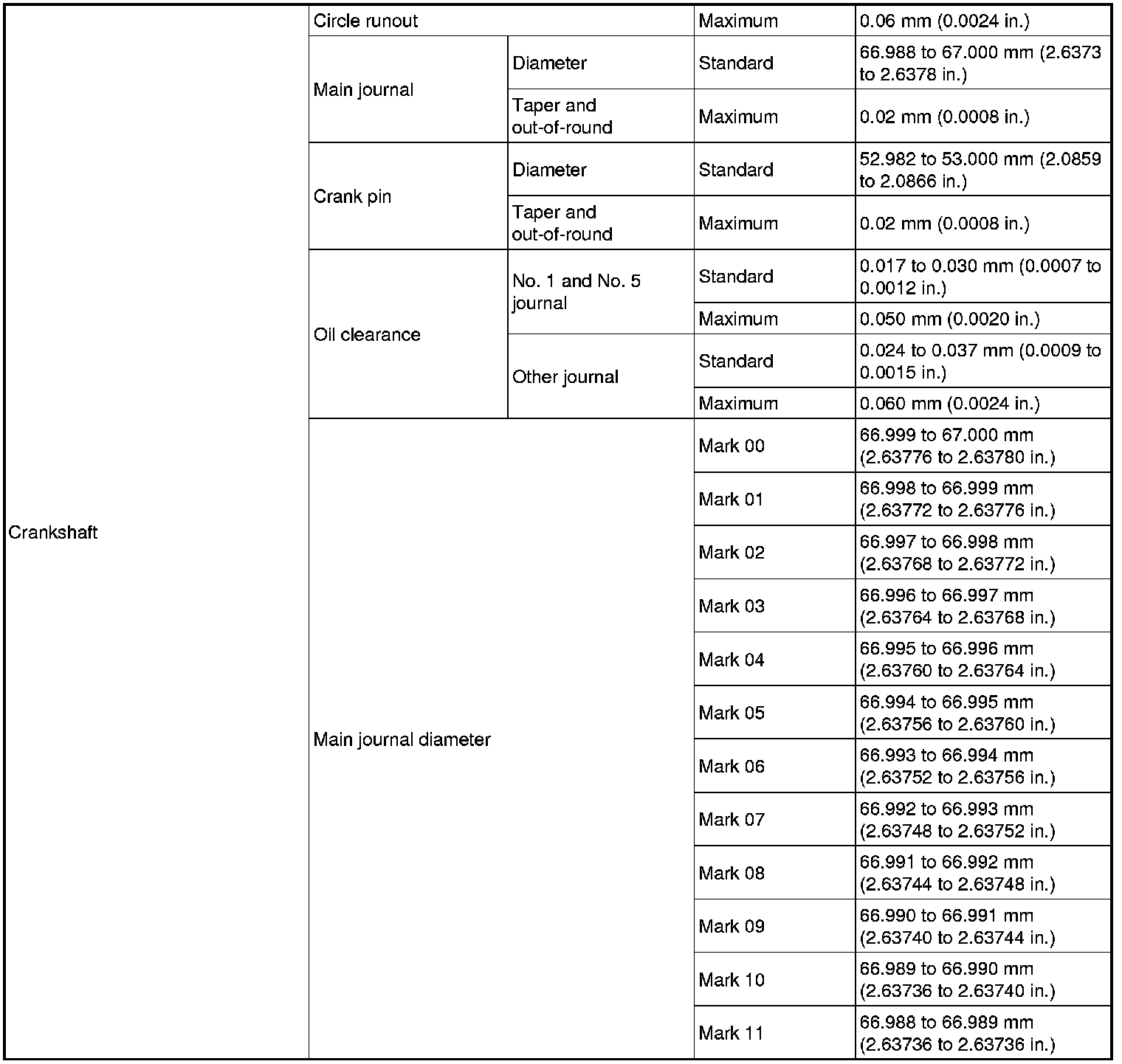 SERVICE SPECIFICATIONS: 1UR-FSE ENGINE MECHANICAL: SERVICE DATA