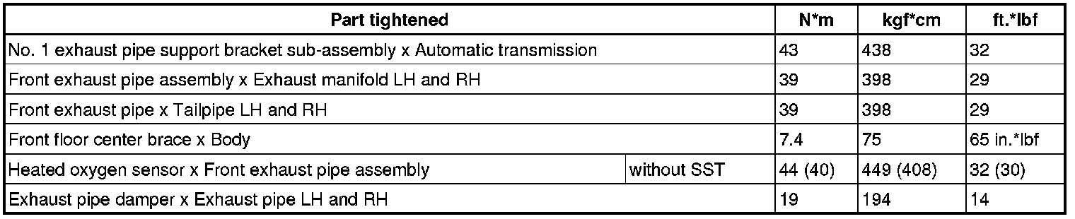 SERVICE SPECIFICATIONS: 1UR-FSE EXHAUST: TORQUE SPECIFICATIONS