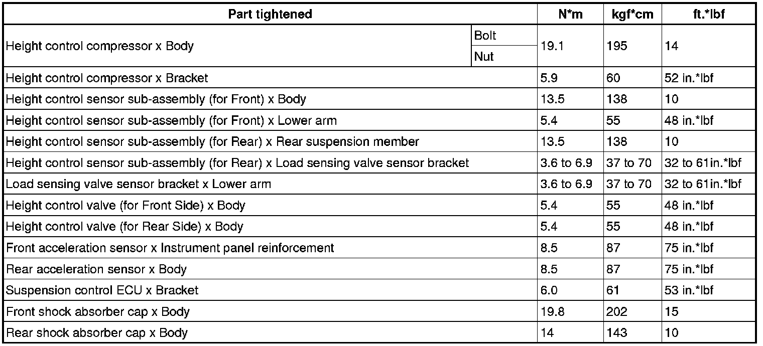 TORQUE SPECIFICATIONS