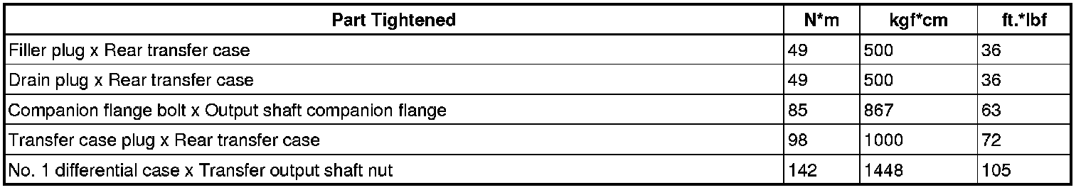 SERVICE SPECIFICATIONS: LF1A TRANSFER: TORQUE SPECIFICATIONS