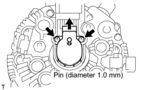 (a) Insert a pin (diameter 1.0 mm) into the generator brush holder assembly to fix the 2 brushes in place.