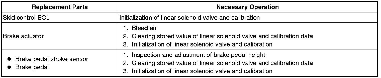 (1) Perform initialization of linear solenoid valve and calibration when the skid control ECU, brake actuator or brake pedal stroke sensor is replaced.