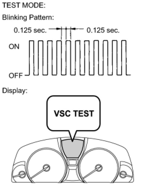 2 Check that the ABS warning light and brake warning light / yellow (minor malfunction) blink and "VSC TEST" is indicated on the multi-information display (Test Mode).