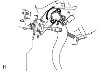 (3) Turn the engine switch ON (IG). While reading the stroke sensor 1 value shown on the Techstream, turn the stroke sensor slowly to the right and left to adjust it to the standard voltage.