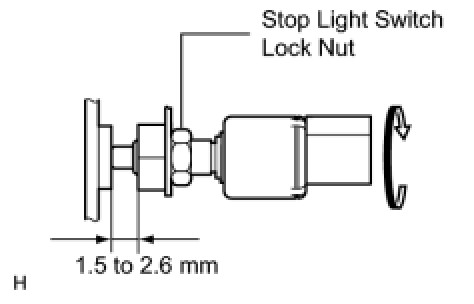 6 Turn the stop light switch so that its protrusion is between 1.5 and 2.6 mm (0.059 and 0.102 in.). Then tighten the lock nut.