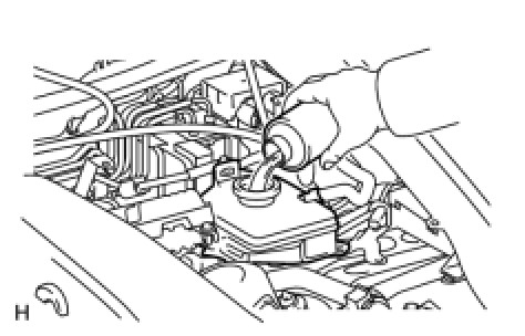 - Air bleeding will be difficult if the following occurs: 1) the brake fluid reservoir's No. 2 brake actuator hose (the hose between the brake accumulator pump and brake fluid reservoir) is lowered into the fluid and air enters the hose; and 2) during the fluid replacement procedure, air enters the brake accumulator pump while operating the pump motor.