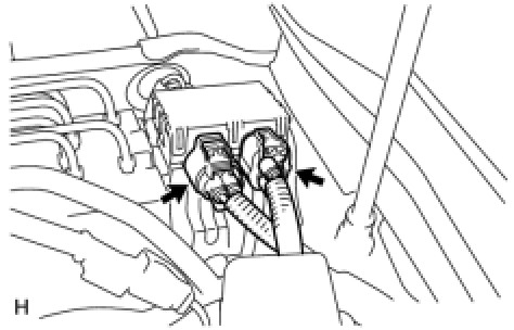 (e) Disconnect the 2 brake accumulator pump connectors.