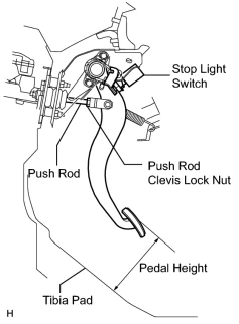 8 Without depressing the brake pedal, check that the stop light does not illuminate. If it illuminates, adjust the brake pedal height again.