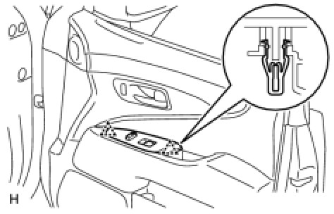 (a) Install the power window regulator switch assembly with the 2 claws.