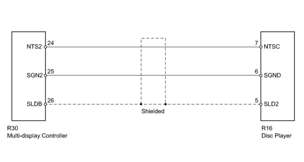 AUDIO / VISUAL: REAR SEAT ENTERTAINMENT SYSTEM: Display Signal Circuit between Multi-display Controller and Disc Player Controller