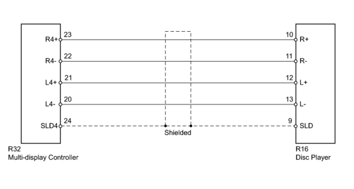 AUDIO / VISUAL: REAR SEAT ENTERTAINMENT SYSTEM: Sound Signal Circuit between Multi-display Controller and Disc Player Controller