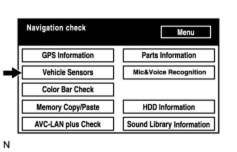 (a) Select "Vehicle Sensors" from the "Navigation check" screen.