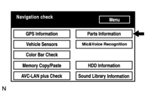 (a) Select "Parts Information" from the "Navigation check" screen.