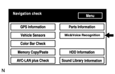 (a) Select "Mic & Voice Recognition Check" on the "Navigation check" screen to display the "MICROPHONE & VOICE RECOGNITION CHECK" screen.