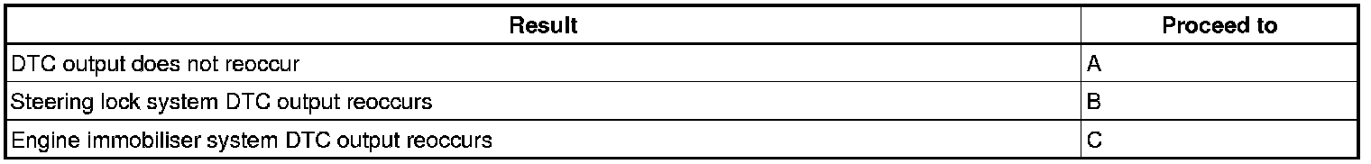 (a) Check for DTCs. Based on the DTCs output above, try to cause the output of the same steering lock system DTC or engine Immobilizer system DTC by simulating the symptoms indicated by the DTC.