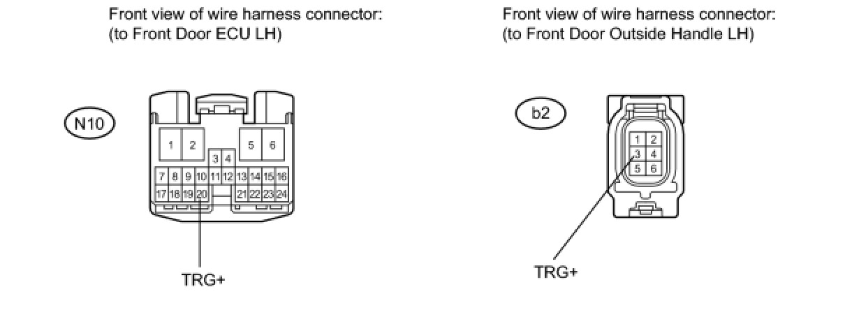 5. CHECK HARNESS AND CONNECTOR (FRONT DOOR OUTSIDE HANDLE LH - FRONT DOOR ECU LH)