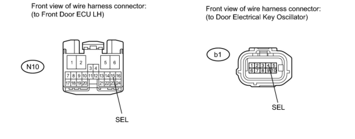 12. CHECK HARNESS AND CONNECTOR (DOOR ELECTRICAL KEY OSCILLATOR - FRONT DOOR ECU LH)