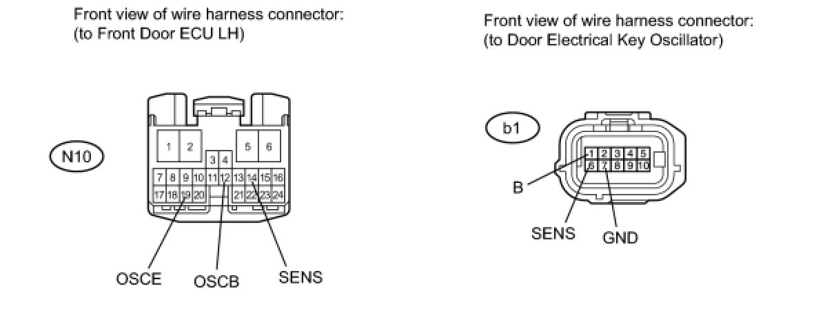 13. CHECK HARNESS AND CONNECTOR (DOOR ELECTRICAL KEY OSCILLATOR - FRONT DOOR OUTSIDE HANDLE LH)