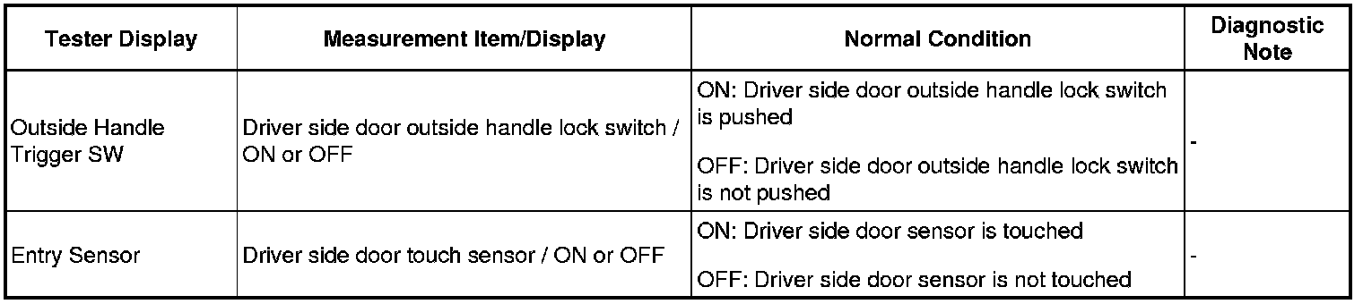 HINT: If the buzzer sounds, it can be determined that the driver seat outside transmitter is operating normally.