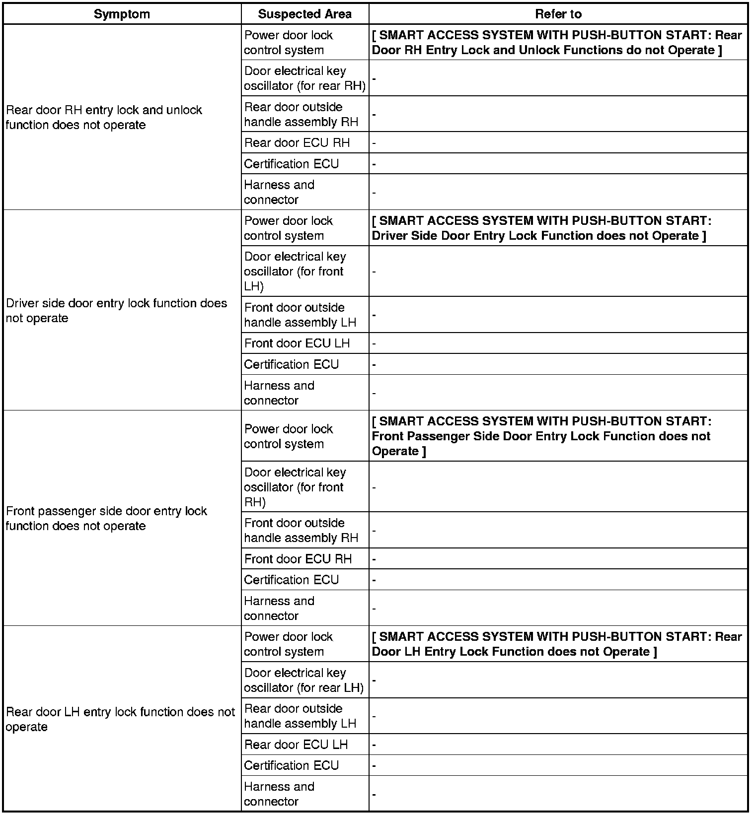 DOOR LOCK: SMART ACCESS SYSTEM WITH PUSH-BUTTON START: PROBLEM SYMPTOMS TABLE