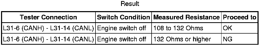 When the measured value is 132 Ohms or higher and a CAN communication system diagnostic trouble code is output, there may be fault besides disconnection of the DLC3 branch wire. For that reason, troubleshooting should be performed again from "HOW TO PROCEED WITH TROUBLESHOOTING" How to Proceed With Troubleshooting after repairing the trouble area.