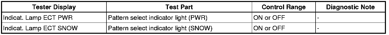 The pattern select switch sends signals to the mirror switch through LIN communication, and the TCM sends signals to the mirror switch through CAN communication. When a pattern select switch signal is input into the TCM, the TCM sends a signal to the combination meter, which then illuminates the indicator light.