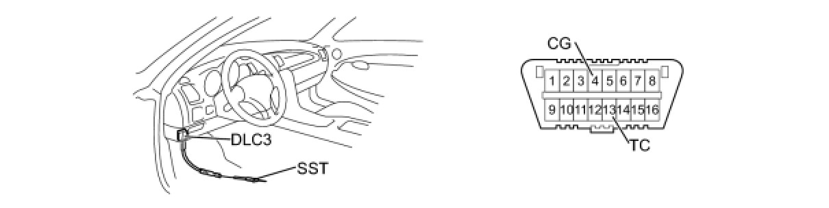 (1) Using SST, connect terminals TC and CG of the DLC3.
