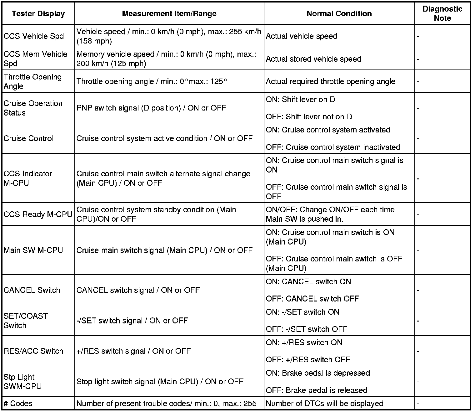 CRUISE CONTROL: CRUISE CONTROL SYSTEM: DATA LIST / ACTIVE TEST