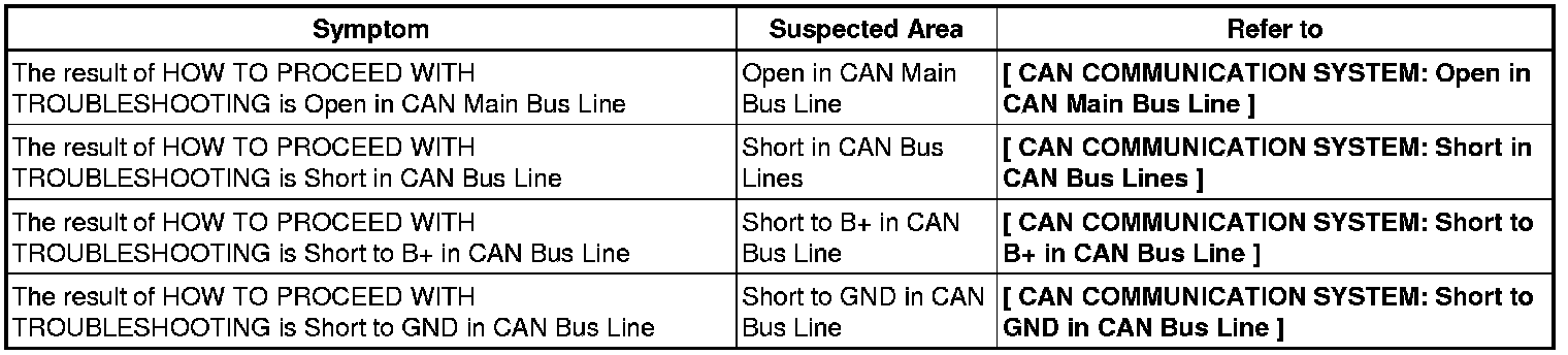 CAN COMMUNICATION: CAN COMMUNICATION SYSTEM: PROBLEM SYMPTOMS TABLE