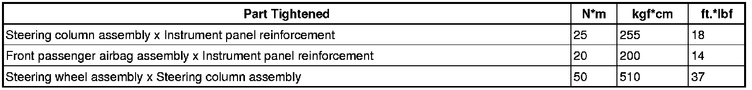 SERVICE SPECIFICATIONS: INSTRUMENT PANEL: TORQUE SPECIFICATIONS