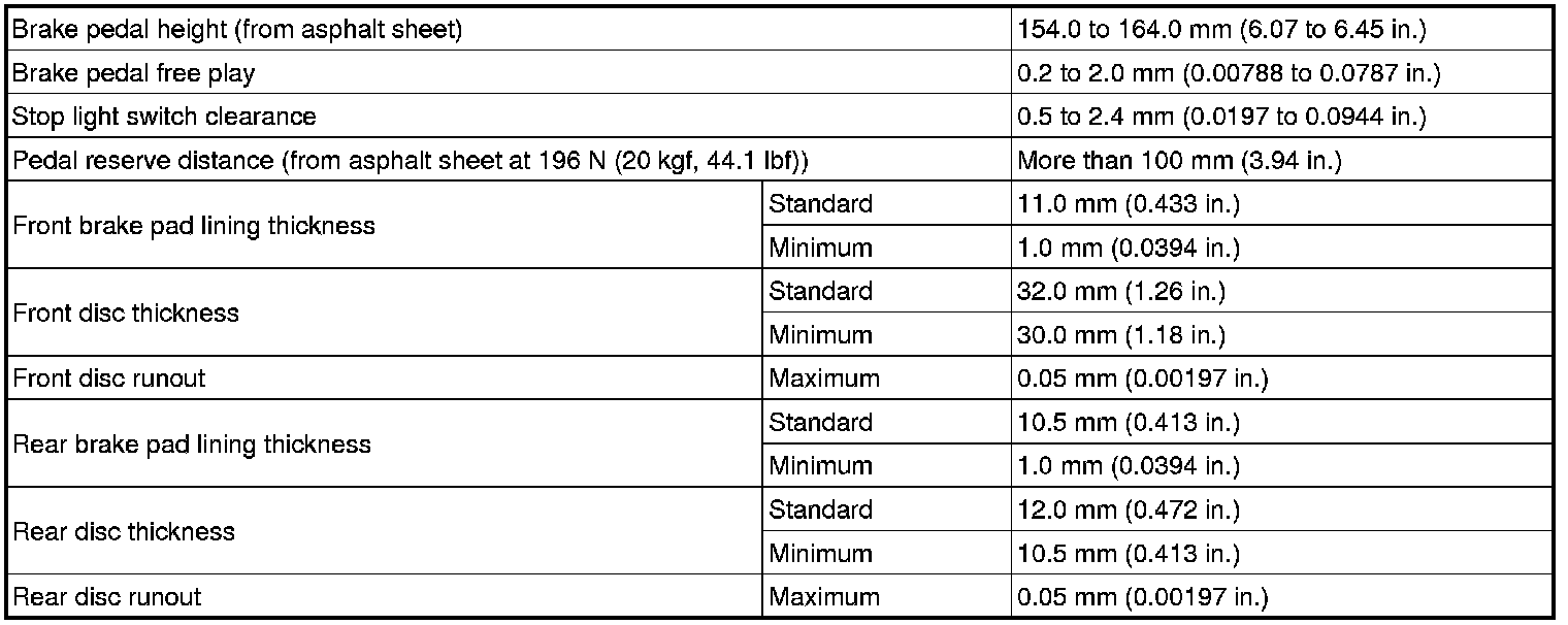 SERVICE SPECIFICATIONS: BRAKE: SERVICE DATA