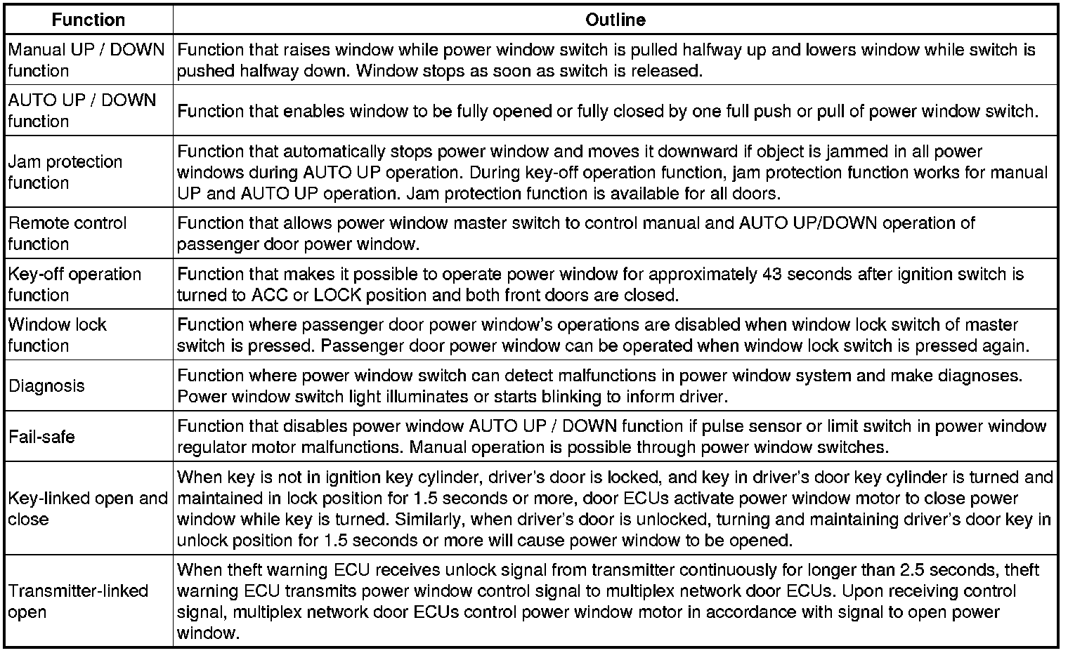 WINDSHIELD / WINDOWGLASS: POWER WINDOW CONTROL SYSTEM: SYSTEM DESCRIPTION